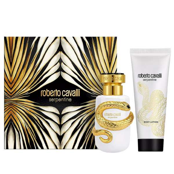 Il cofanetto Roberto Cavalli Serpentine racchiude due must-have per chi desidera un’esperienza olfattiva profonda e duratura: l’Eau de Parfum da 50ml, che incanta con note di Bergamotto, Ribes Nero, Gelsomino Sambac, Magnolia, Zafferano Dorato e un fondo avvolgente di Vaniglia del Madagascar, Fava Tonka e Patchouli; e la Body Lotion da 100ml, che lascia la pelle morbida e delicatamente profumata, prolungando la persistenza della fragranza. Una combinazione pensata per valorizzare ogni momento con eleganza e charme.